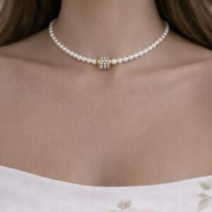 Κολιέ με Μαργαριτάρια Καλλιέργειας 3-4 mm με διακριτική πολυτέλεια και φινέτσα. Συνδύασέ το με αλυσίδες για ένα chic layering αποτέλεσμα
