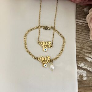 Ατσάλινη αλυσίδα και μαμά από ορείχαλκο επιχρυσωμένο