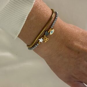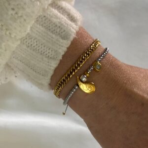 Ατσάλινο βραχιόλι με μακραμέ κούμπωμα – αυξομειούμενο . Ταιριάζει σε όλους τους καρπούς .