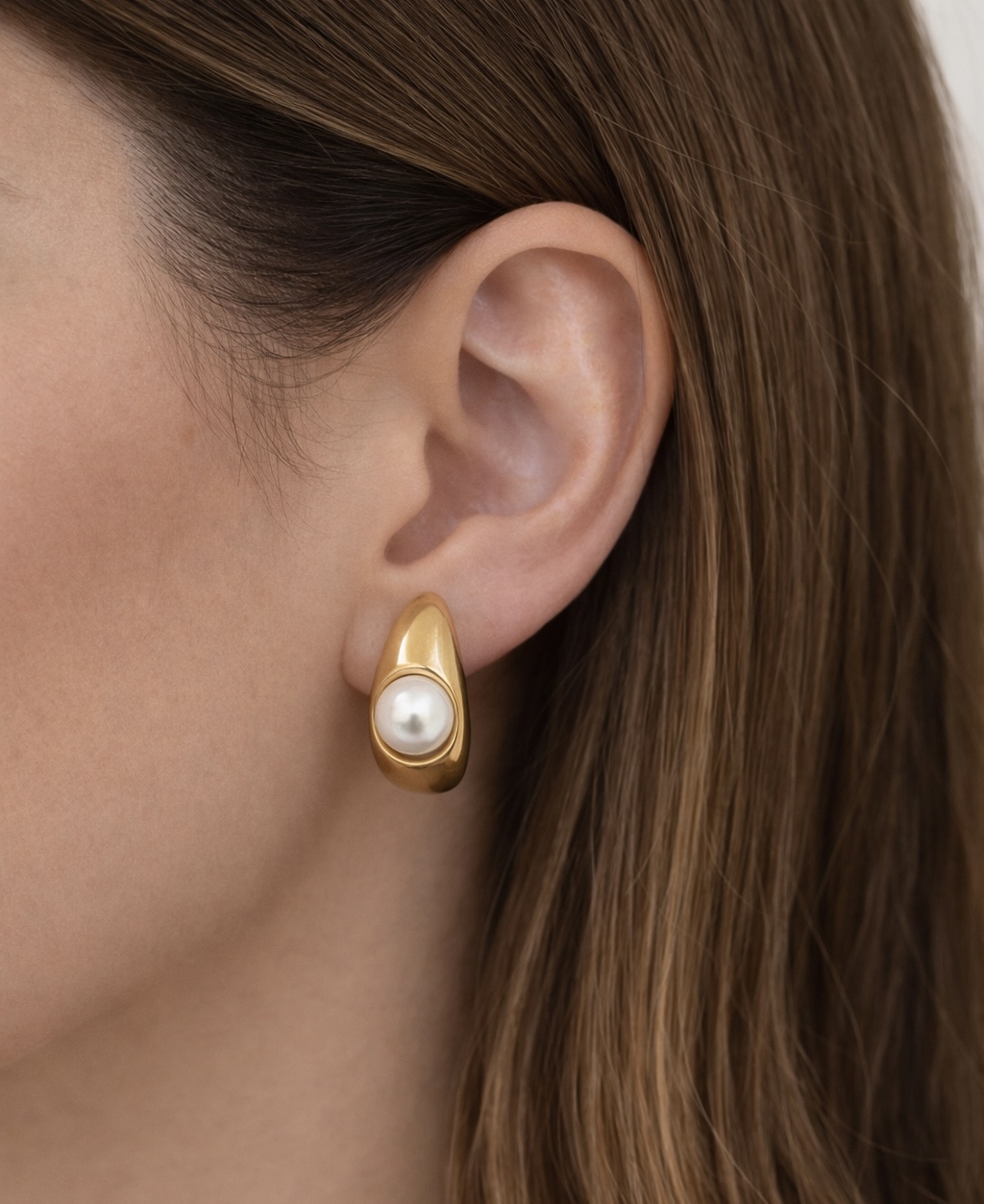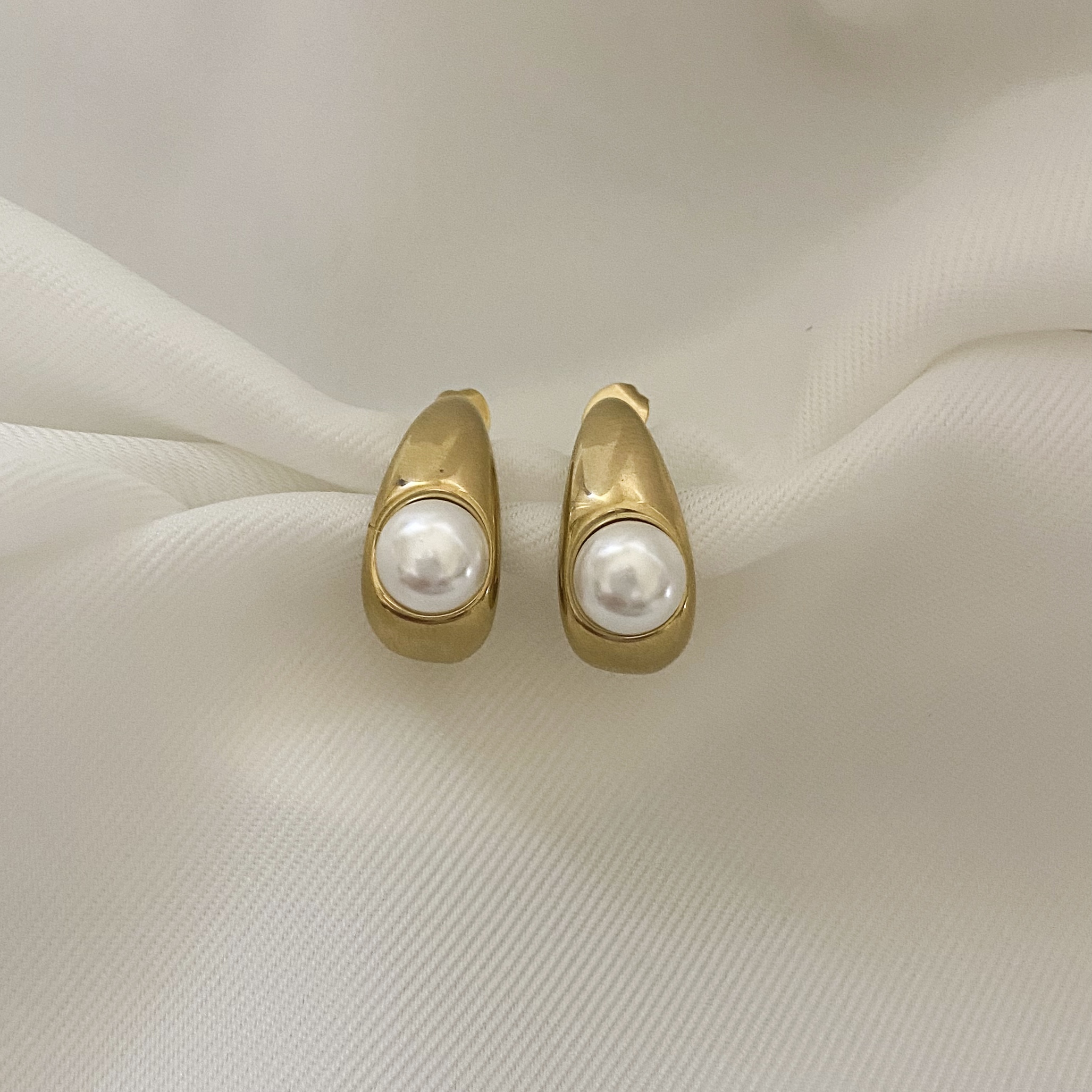 Ατσάλινα σκουλαρίκια με λευκή πέρλα 8 mm