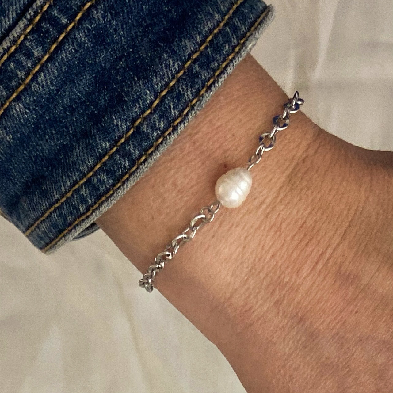 Ατσάλινη αλυσίδα με μαργαριτάρι καλλιέργειας ατσάλινο κούμπωμα και προέκταση