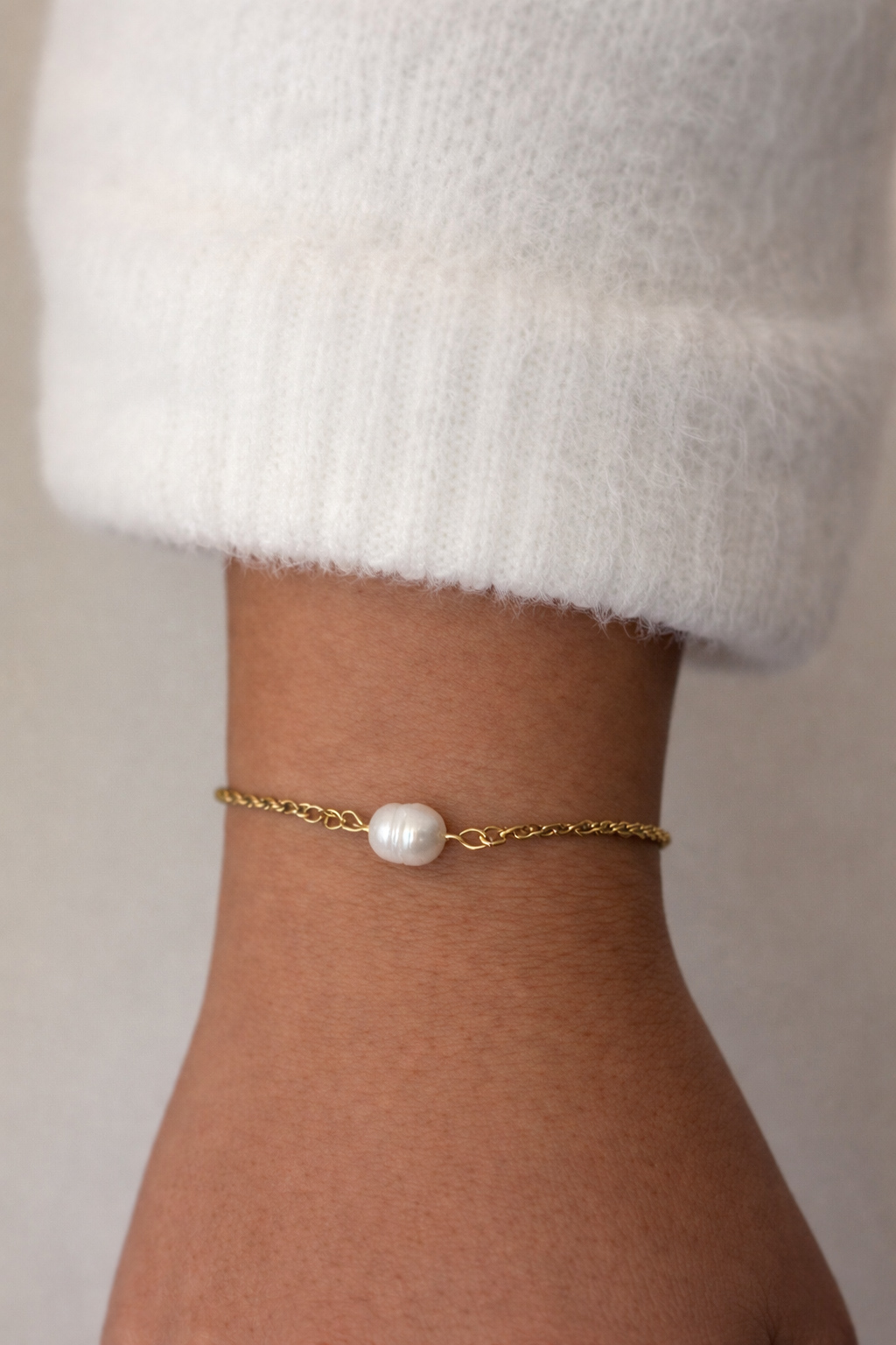 Ατσάλινη αλυσίδα με μαργαριτάρι καλλιέργειας ατσάλινο κούμπωμα και προέκταση