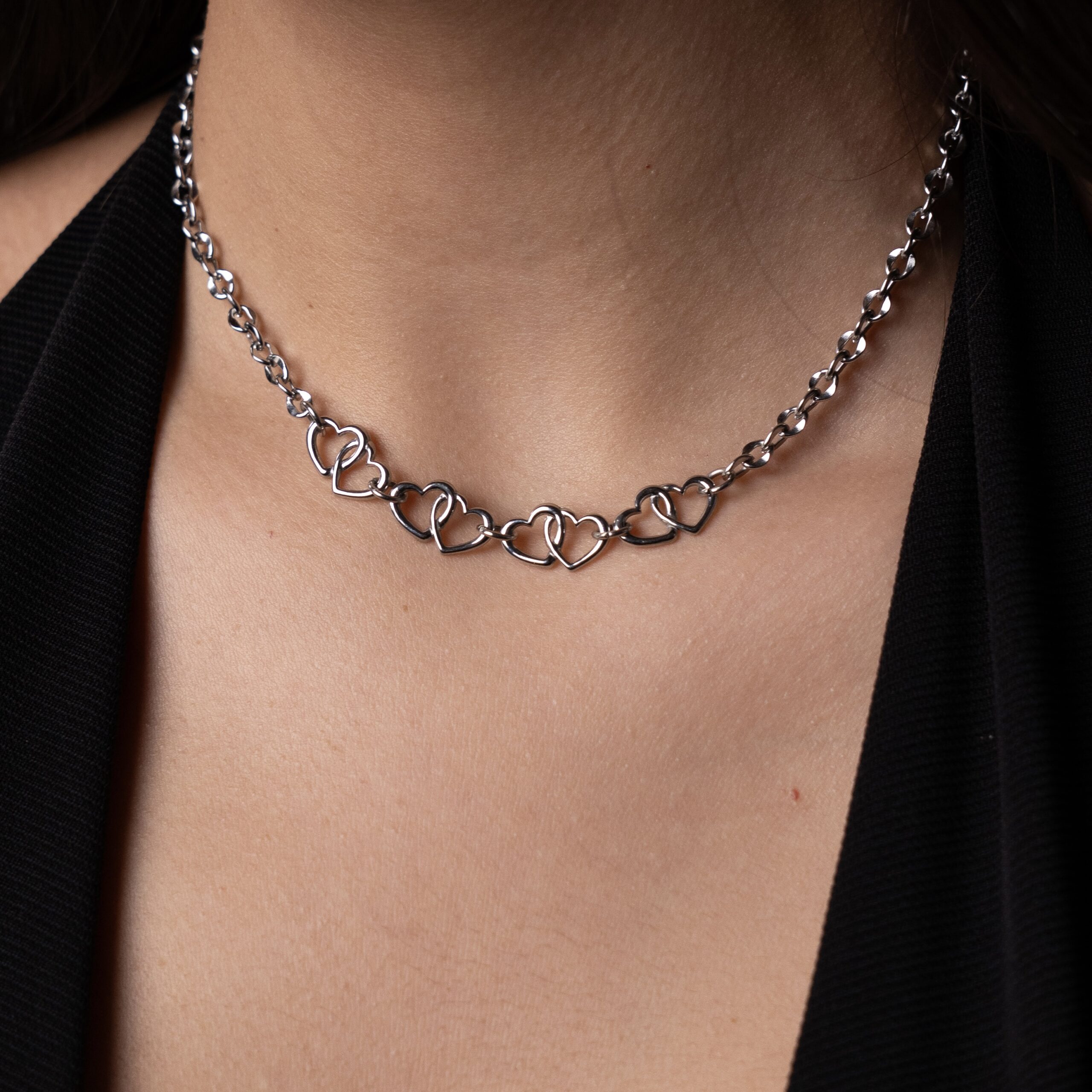 Νεανικό κολιέ αποπνέει ρομαντισμό. Οι πολλές μικρές καρδούλες δημιουργούν ένα παιχνιδιάρικο αλλά κομψό αποτέλεσμα, ιδανικό για κάθε στιγμή της ημέρας
