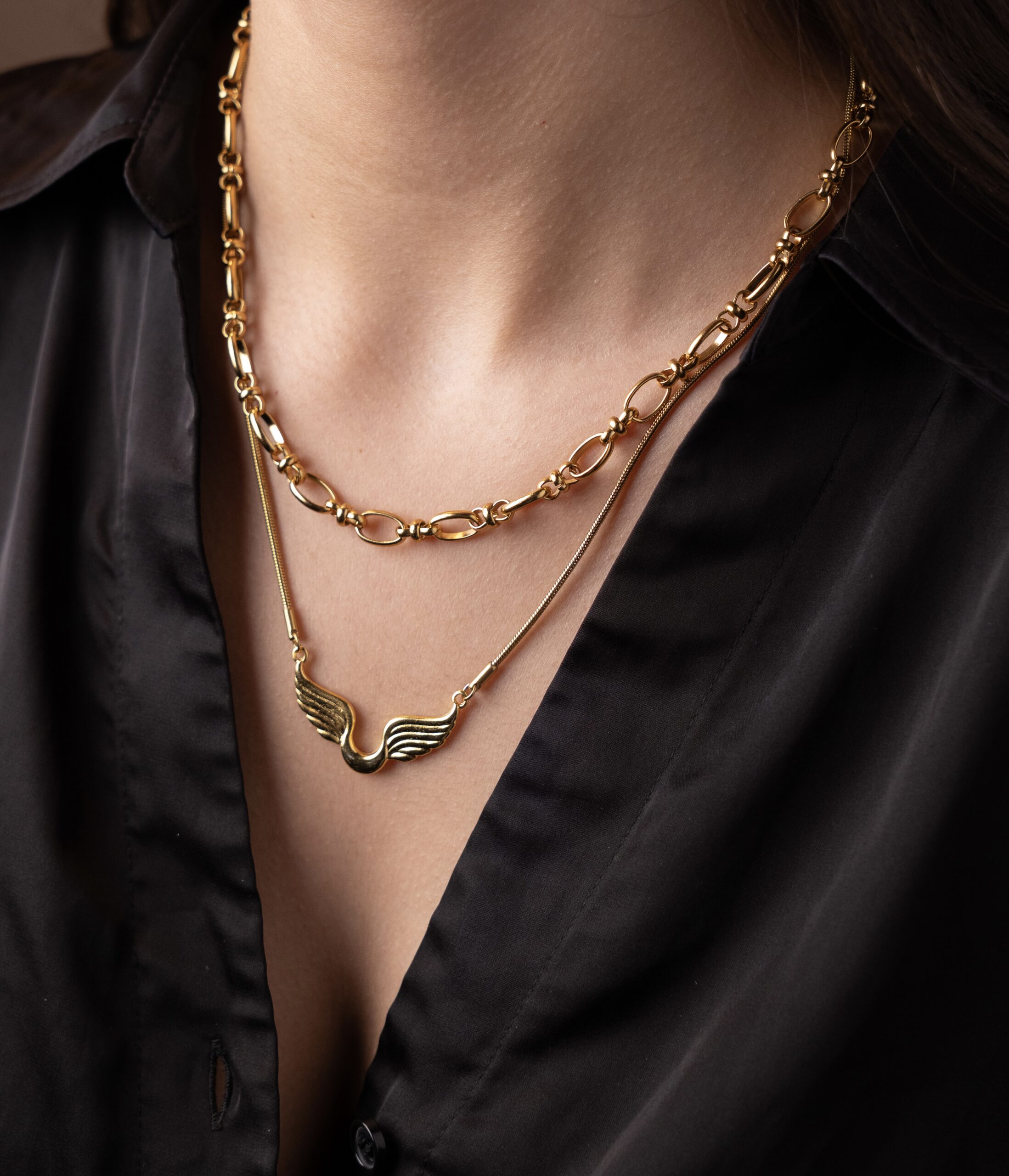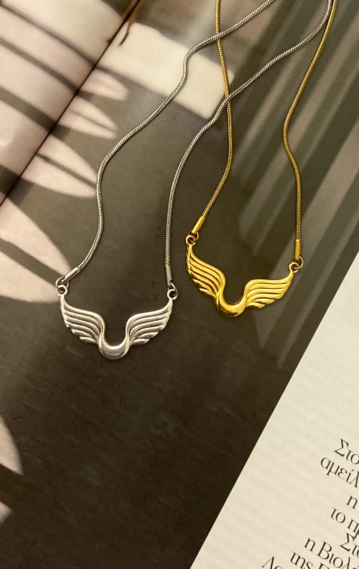 Ατσάλινη αλυσίδα Snake με διπλά φτερά αγγέλου. Ενα κόσμημα σύμβολο προστασίας και ελευθερίας. Μπορεί να φορεθεί μόνο του η σε layering με άλλα κοσμήματα