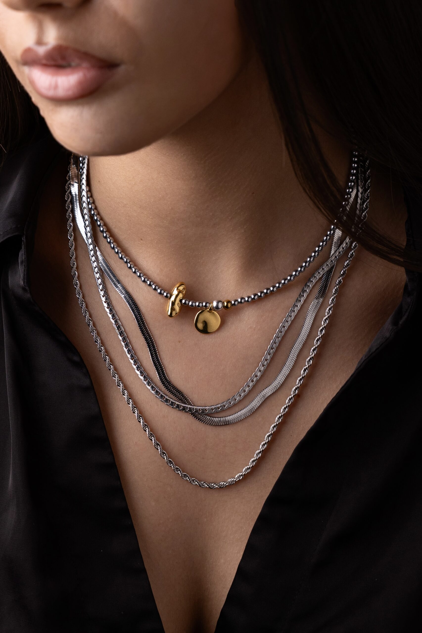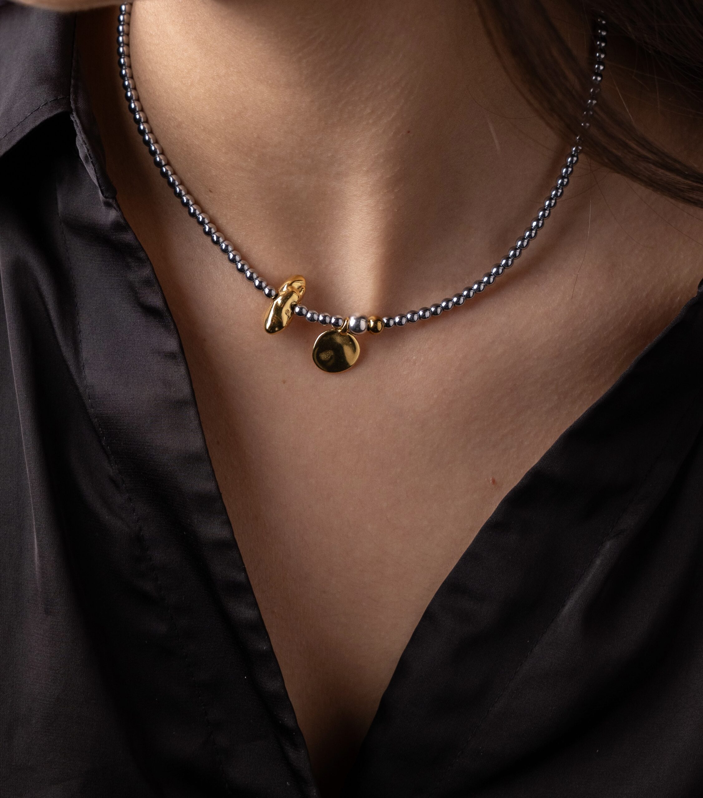Ο δυναμικός συνδιασμός του χρυσού με το ασήμι δημιουργεί ένα μοντέρνο κόσμημα που ξεχωρίζει .